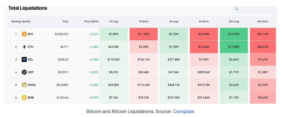 Биткоин установил новый исторический максимум, пробив отметку в $126 000, и все это — при явном отсутствии ажиотажа со стороны розничных трейдеров. Корпоративные вливания буквально смели огромный объем коротких позиций, что, в свою очередь, породило весьма аномальную ситуацию на рынке.