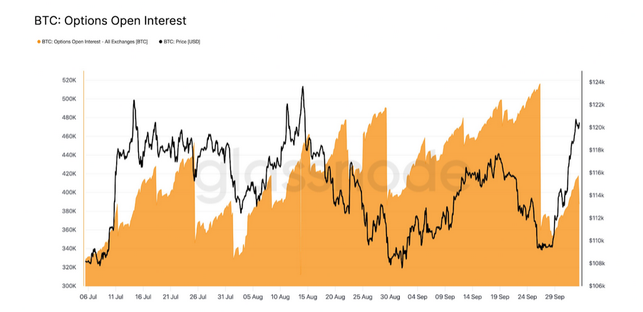 Показательно, что открытый интерес по биткоину резко снизился после экспирации опционов на прошлой неделе, что может создать благоприятную почву для четвертого квартала, отмечают в Glassnode.