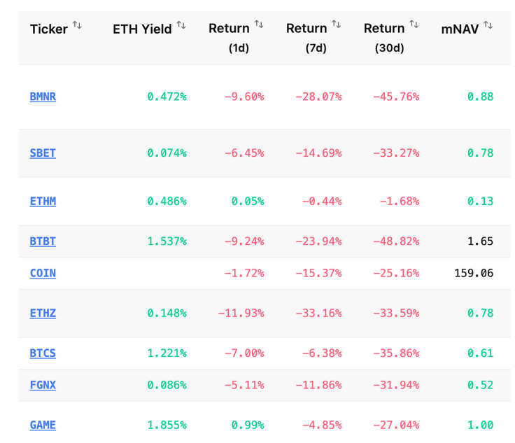 Компании, управляющие казначействами в эфире (Ether treasury companies), сидят в миллионных нереализованных убытках. Давит падающая mNAV, а перспектива ухода ETH…