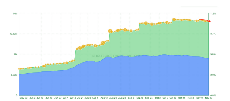 По данным StrategicETHreserve.xyz, суммарные запасы стратегических резервов и ETF с 11 ноября похудели на 280 414 ETH — ощутимый отток, парковка ликвидности и шаг назад от риска.