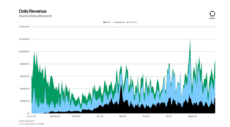 Одна только торговая платформа Axiom, в штате которой менее 10 сотрудников, сгенерировала свыше $200 миллионов комиссий благодаря активности вокруг мемкоинов. "Axiom вышла на миллионные месячные доходы, собирая комиссии с трейдеров мемкоинов", — отмечается в докладе. Другие инструменты, такие как BONKbot и Trojan, также получают выручку, взимая плату с пользователей за автоматическую покупку новых токенов в момент их запуска.