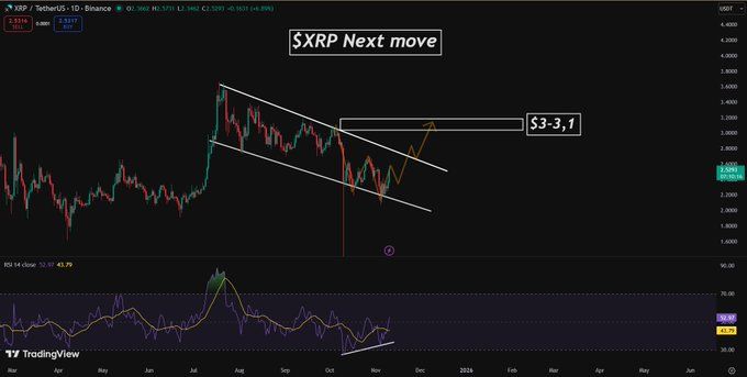 XRP формирует бычий флаг и дивергенцию, а внимание рынка сосредоточено на зоне пробоя в районе $3. В это же время…